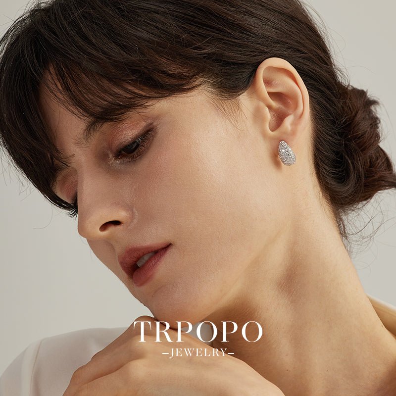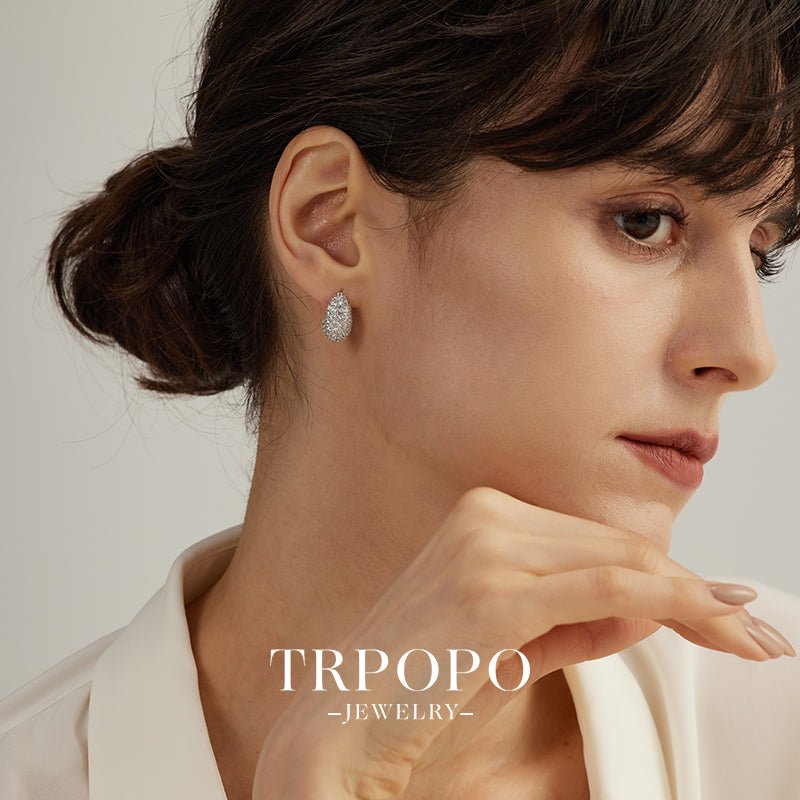 these captivating stud earrings from TRPOPO Jewelry are fashioned in the shape of peas, ablaze with numerous sparkling crystals. Crafted from high - quality alloy, they offer a lightweight feel along with enduring shine. Presented in an elegant gift box, they're perfect for adding a touch of allure to any outfit.