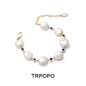Lapis Lazuli Accented Baroque Coin Pearl Bracelet