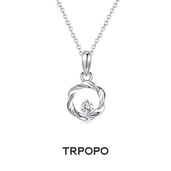 This necklace features a minimalist yet refined design. The pendant is a delicate twisted halo surrounding a sparkling round cubic zirconia stone, suspended from a thin silver-toned chain. The overall style is fresh and versatile, perfect for everyday wear, adding a touch of subtle brilliance to the neckline.