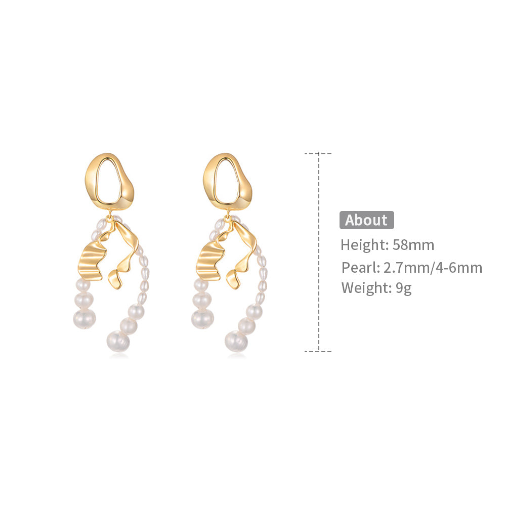 earrings, crafted from 18K gold, flaunt uniquely fluid shapes. Interspersed with lustrous pearls, they create a harmonious blend of modern artistry and classic elegance. The design catches the light with every movement, making them a stunning addition to any jewelry collection. Whether it's a day at the office or an evening soiree, they effortlessly elevate your look.