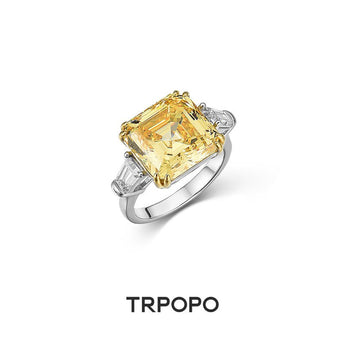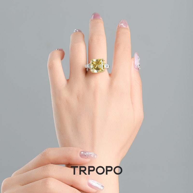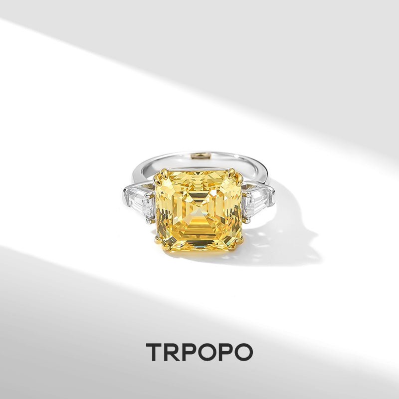 Yellow Citrine Diamond-Cut Guardian Ring
