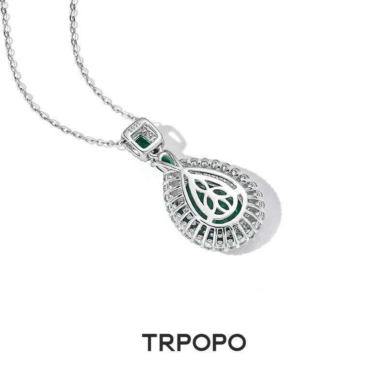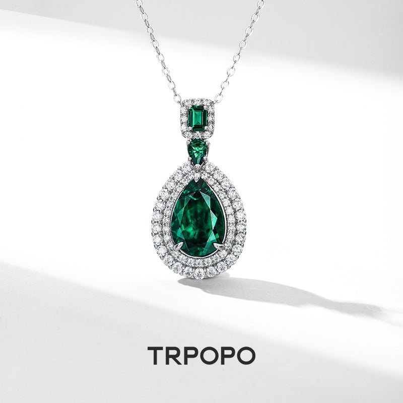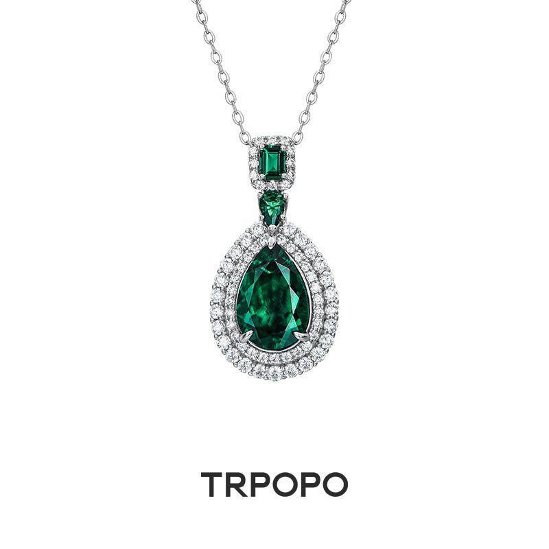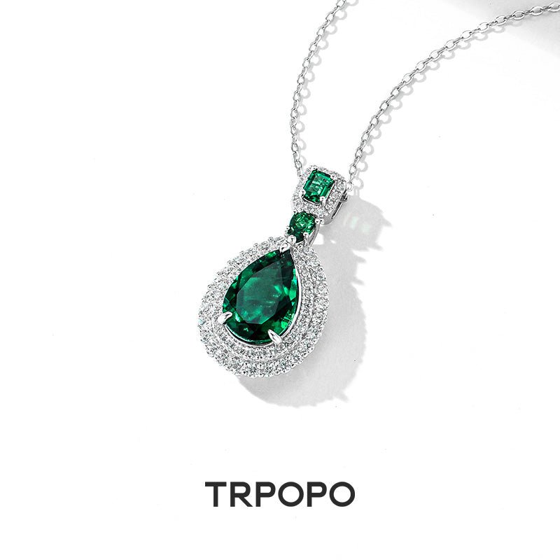 Emerald Teardrop Diamond Pendant Necklace