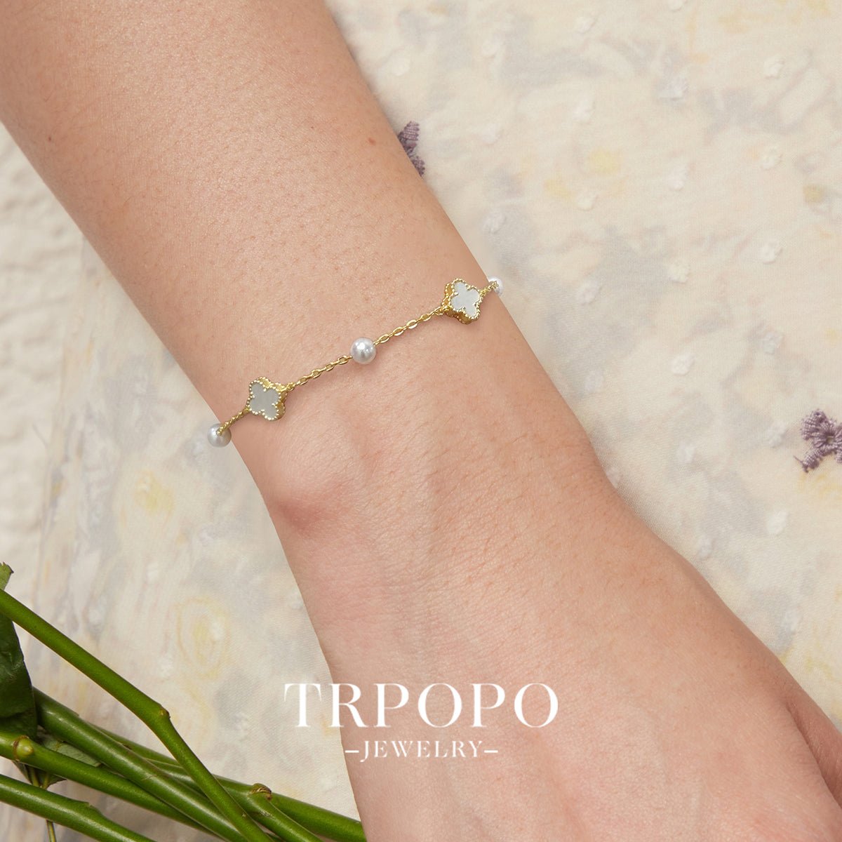 Four-Leaf Clover Freshwater Pearl Bracelet