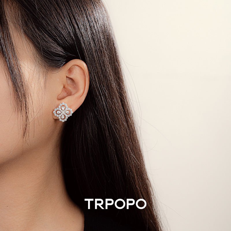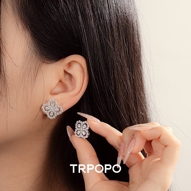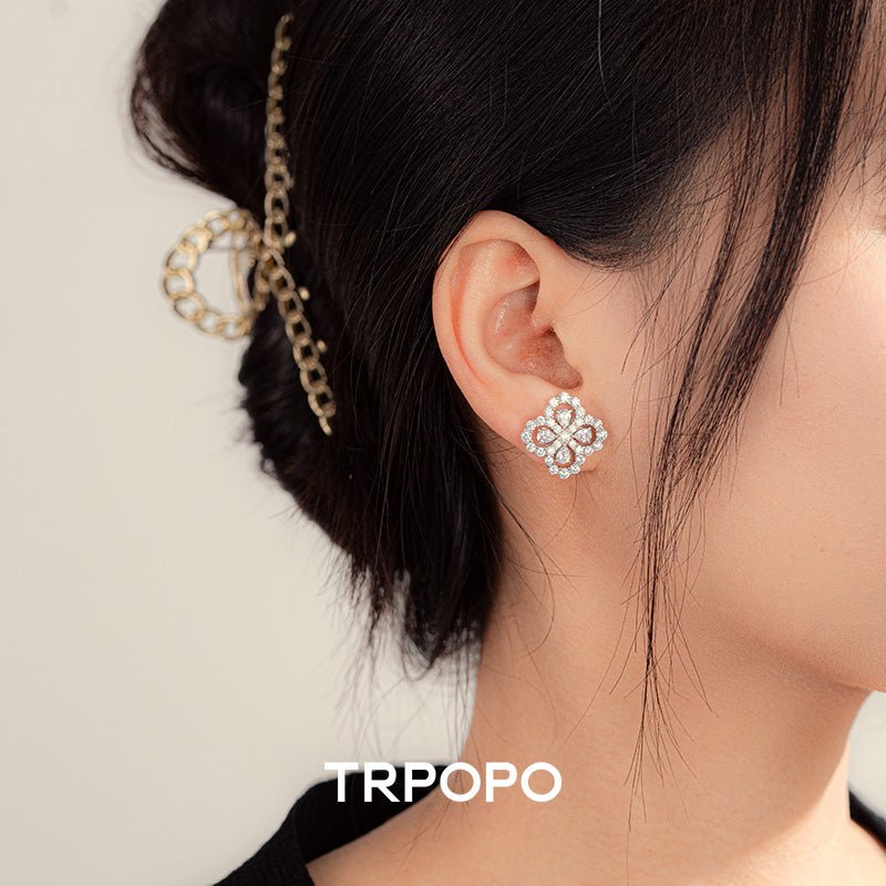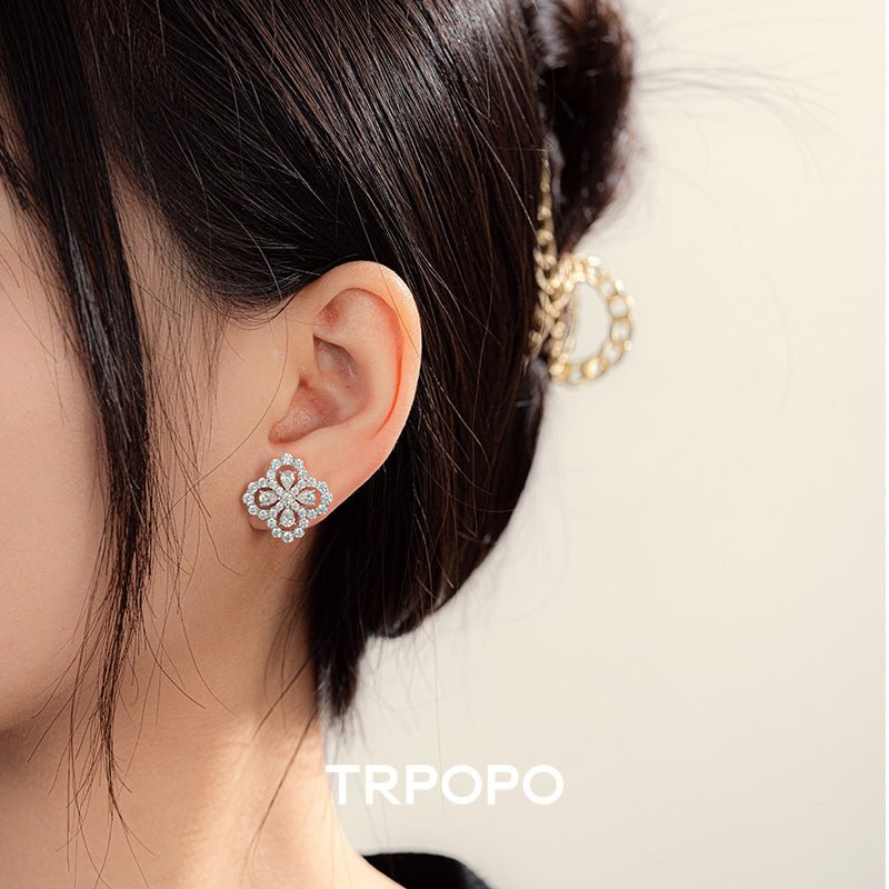 Diamond Bloom Clover Stud Earrings