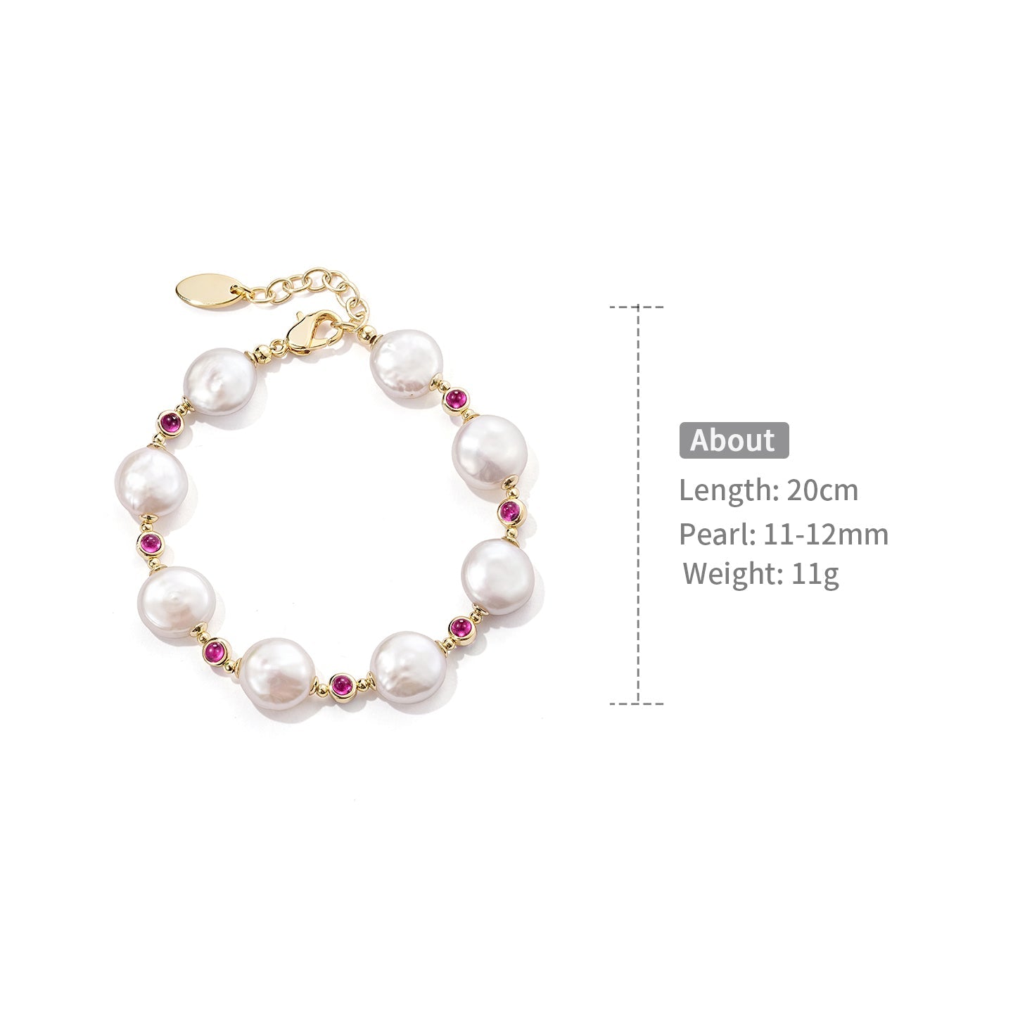 Ruby-Kissed Baroque Pearl Bracelet