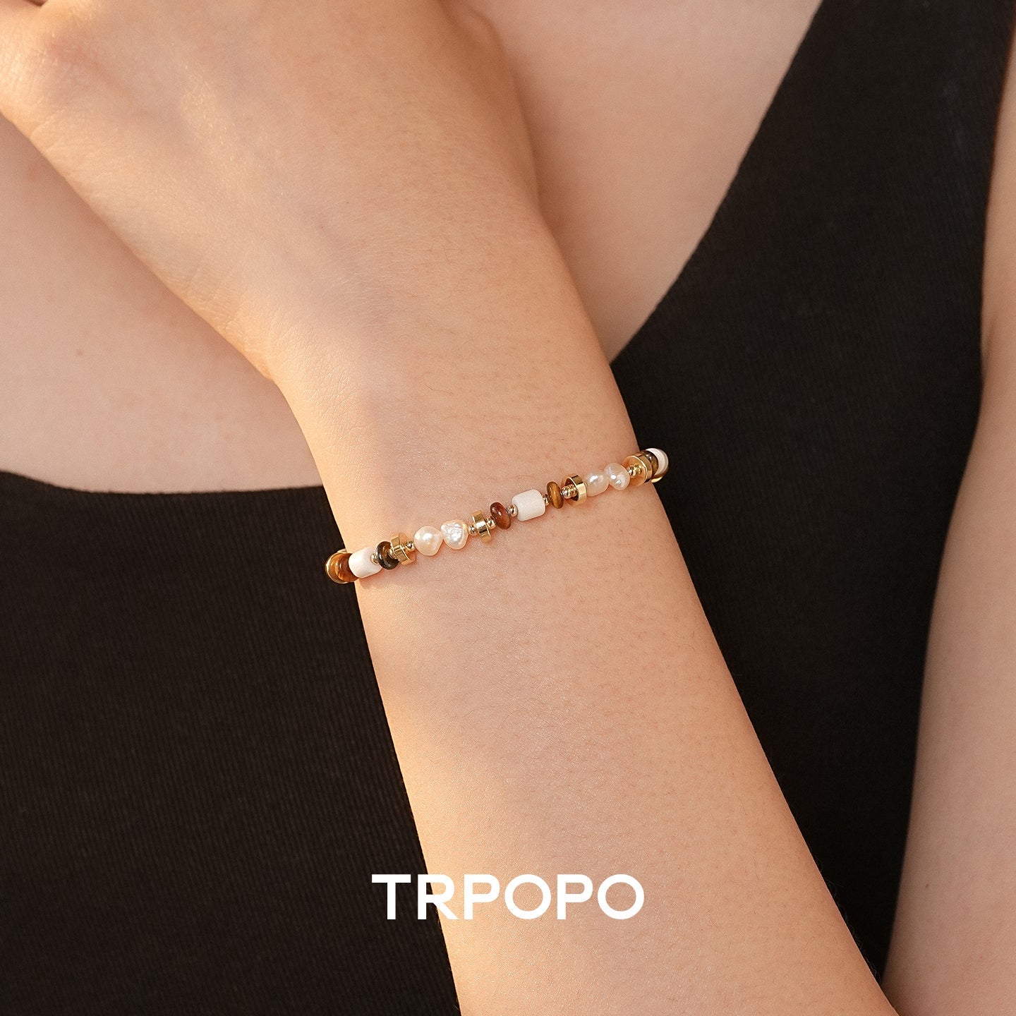 Irregular baroque pearls alternate with tiger's eye stones, accented by golden spacers – earthy wild tones wrapping your wrist, power meets softness.