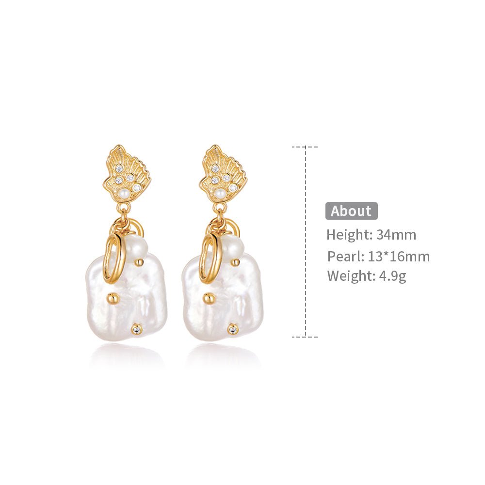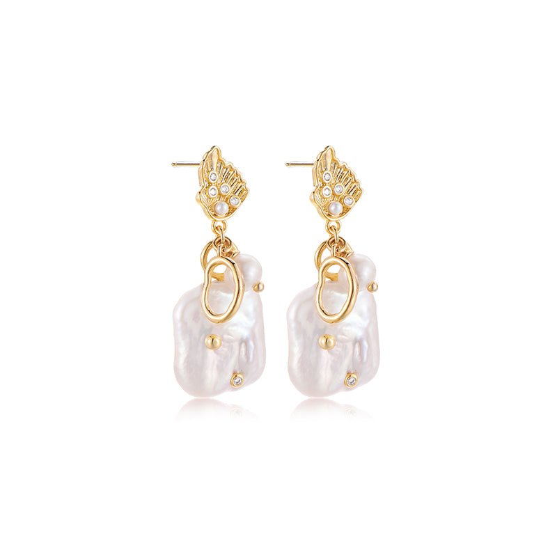 Plated Baroque Pearl Drop Earrings with Shell - shaped Top and Diamond Accents