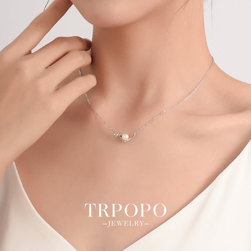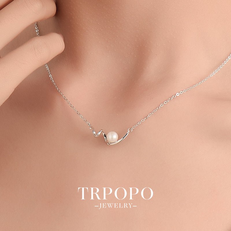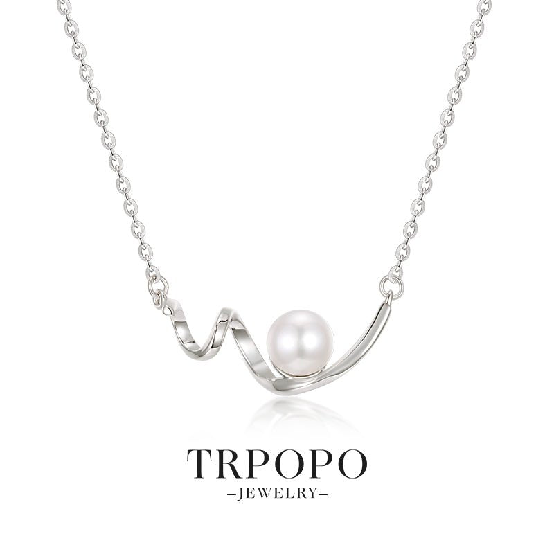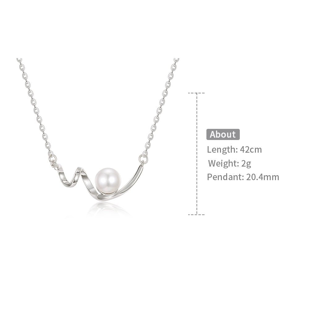 A silver wave - shaped pendant matched with a round pearl, simple and elegant, fully showing delicacy.