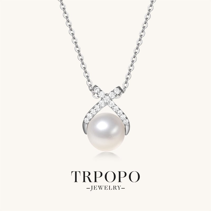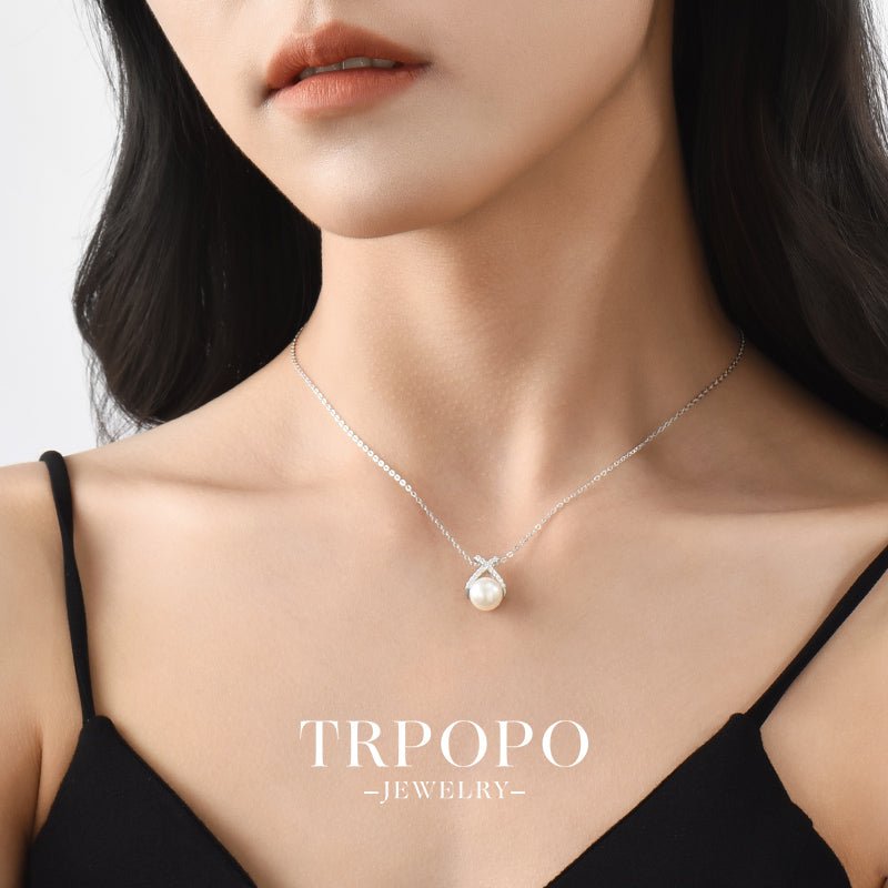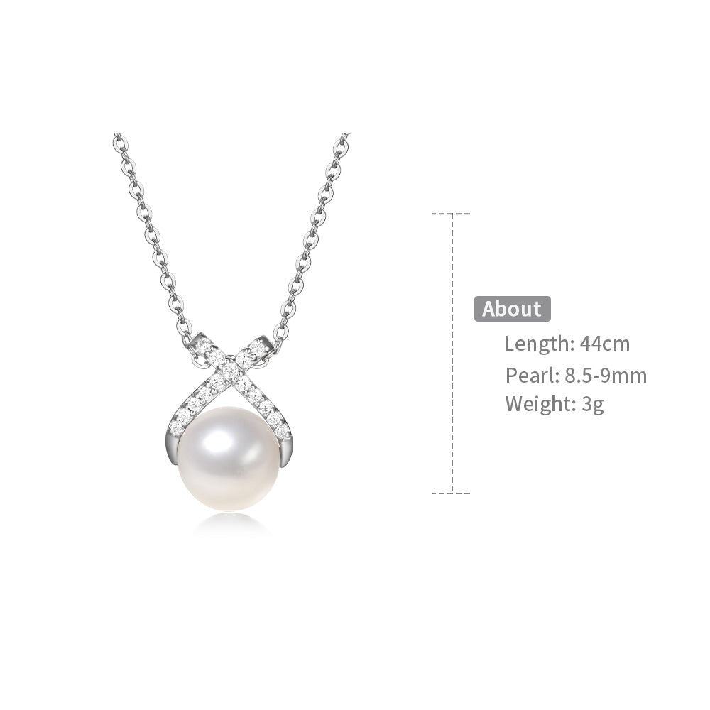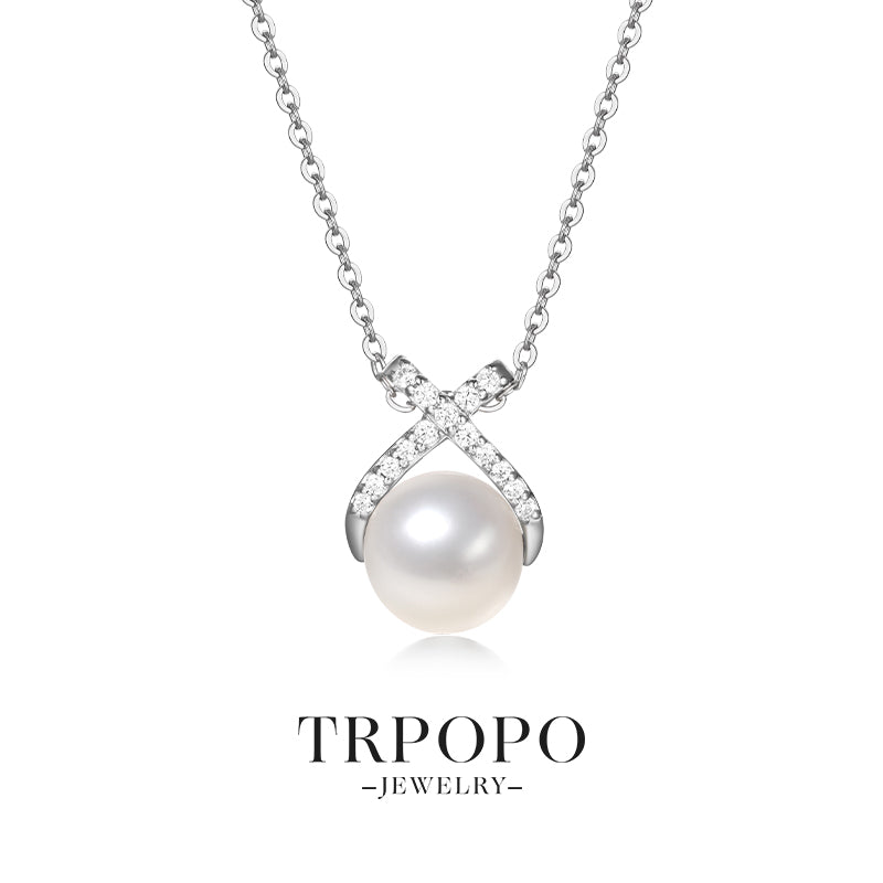 This necklace features a round pearl at its core, with a cross design inlaid with sparkling diamonds. It showcases elegant luxury in simplicity and is a perfect choice to enhance the sophistication of your outfit.