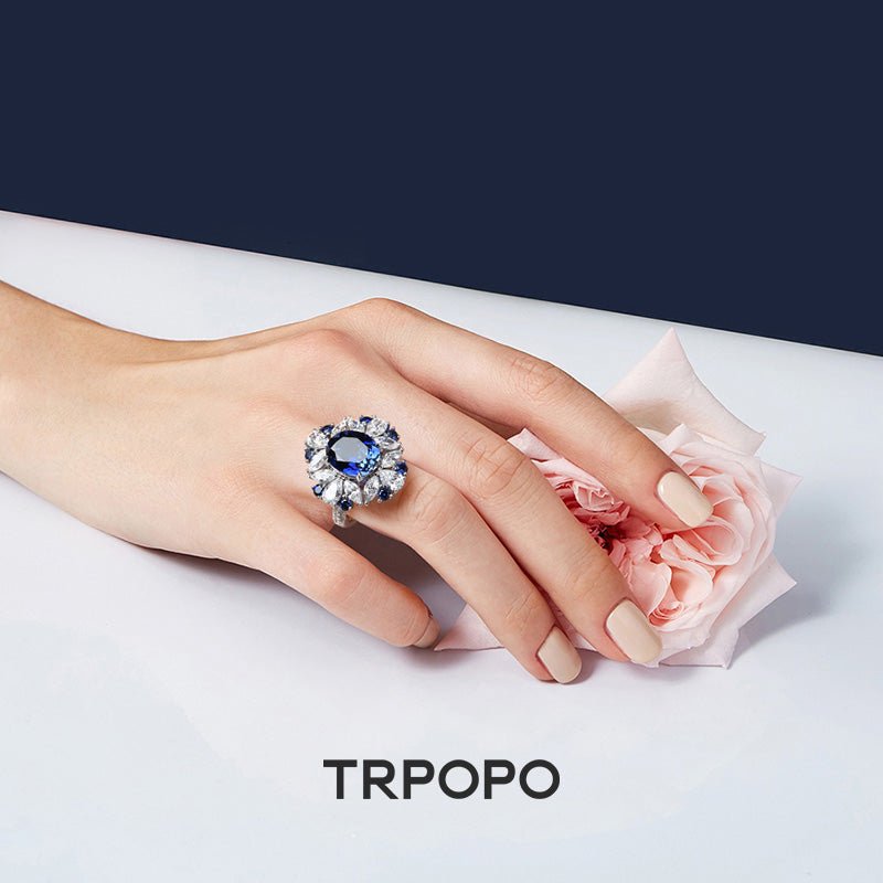 Sapphire Bloom Halo Ring