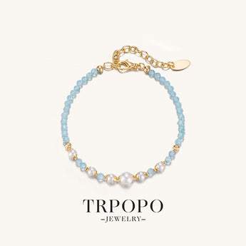 bracelet uses blue beads to mimic the color of the ocean, paired with round pearls and a golden chain. It's like the ocean and stars shining together. With exquisite design and a light - luxury style, it condenses the dreamy charm of the ocean on the wrist.