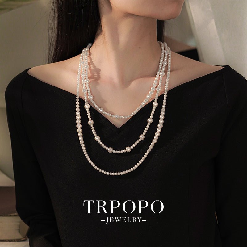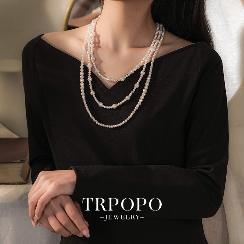 necklace showcases elegant multi - layered pearl strands. Its cascading design infuses timeless sophistication and dimensional charm into any look, blending classic pearl allure with modern layering style.