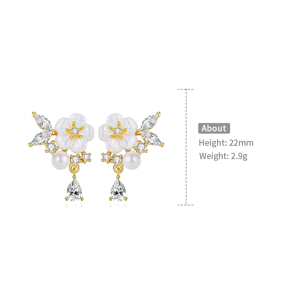 Sterling Silver Camellia Drop Earrings