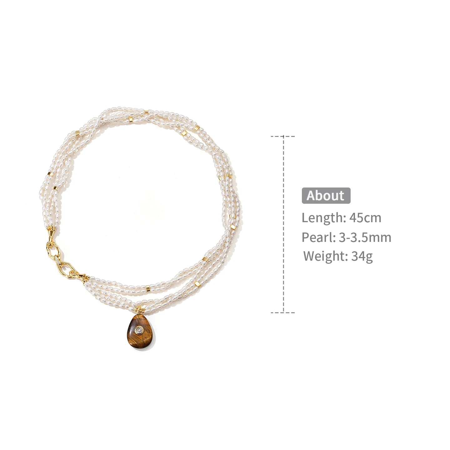 Triple Strand Pearl Tiger's Eye Diamond Pendant Necklace