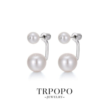 Double - Pearl Sterling Silver Earrings with Zircon Accent-Silver