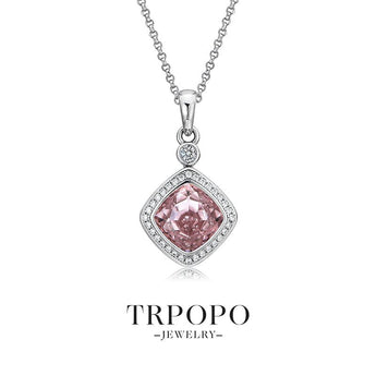 Square Pink Gem Halo Pendant Necklace